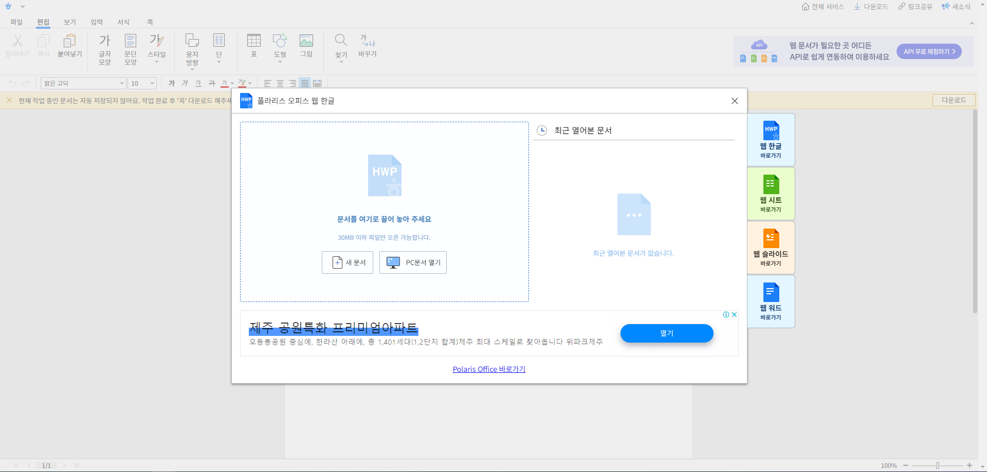 새 문서뿐만 아니라 기존 문서를 불러와 보시거나 편집하여 사용하실 수 있습니다.